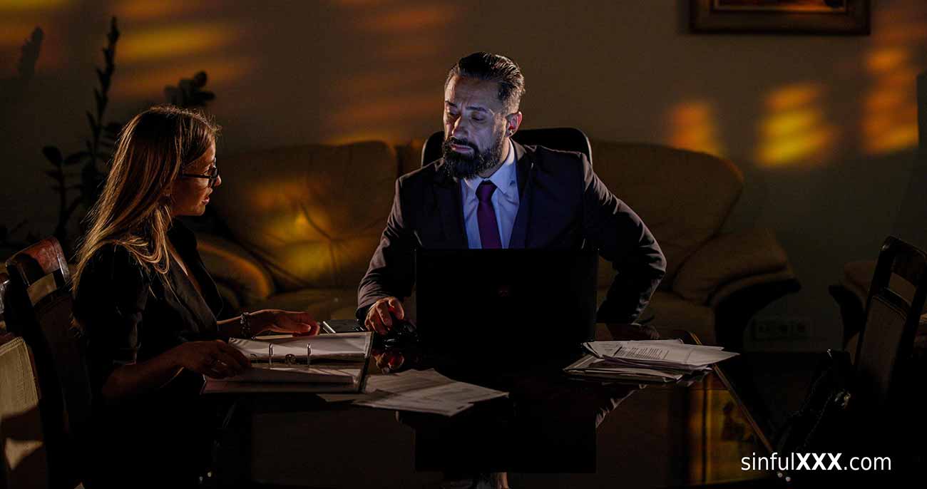 Secretary Eveline Dellai starts early the next morning to prepare the work day for her boss. She finds the handbag that Medusa has accidentally left at Mugur’s office. When she opens the bag, she gets turned on… what happened after she left, last night?